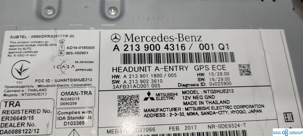 Блок мультимедиа Mercedes-Benz E-Класс W213/S213/C238/A238 2018